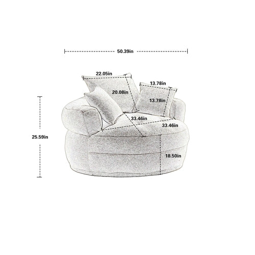 The sofa’s compact, circular design maximizes space efficiency while creating a warm, inviting focal point. Paired with three matching chenille throw pillows, it enhances both comfort and style, offering adjustable lumbar support and a cohesive aesthetic. The pillow’s filler is designed to retain shape over time, ensuring lasting plushness.
